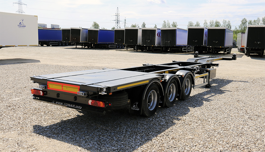 Трехосный полуприцеп-контейнеровоз для перевозки контейнеров 1х20`,2х20`,1х30`, 1х40`,1х40`HQ