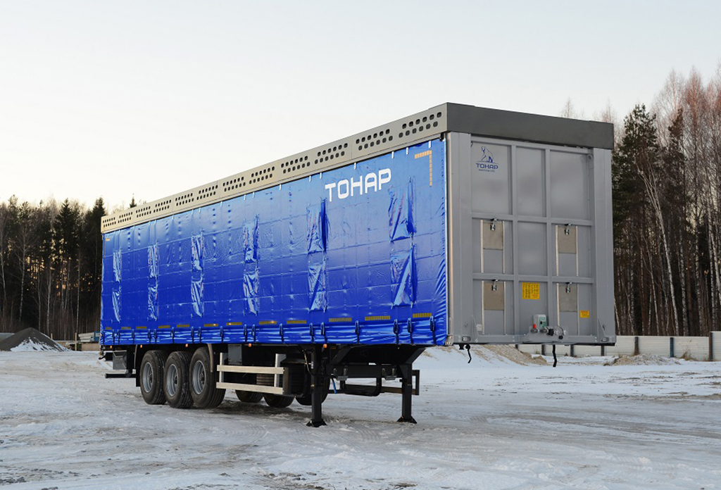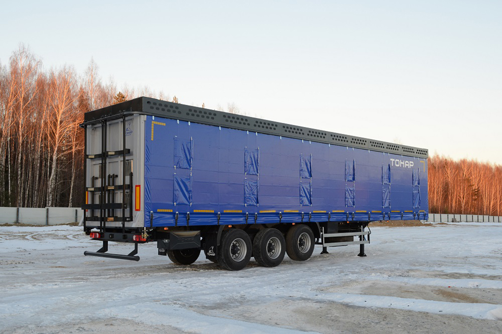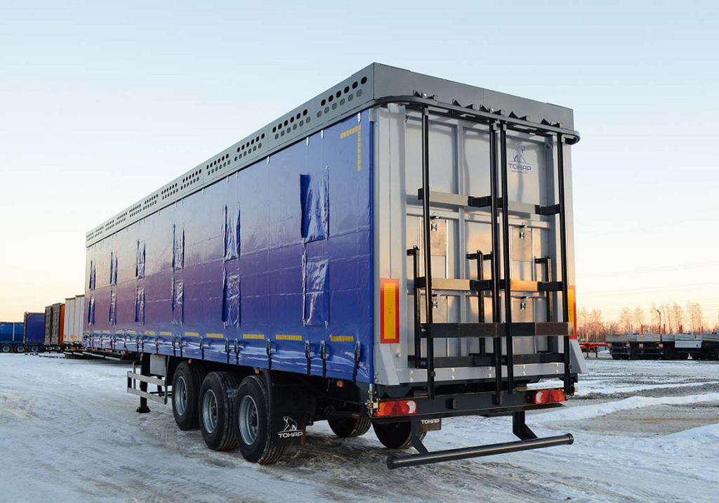 Крыша полуприцепа выполнена из ячеистой пластиковой панели.