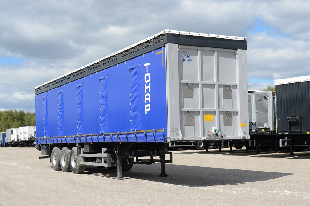 • Удобный шторный механизм и отсутствие стоек позволяют быстро разгрузить и загрузить полуприцеп;