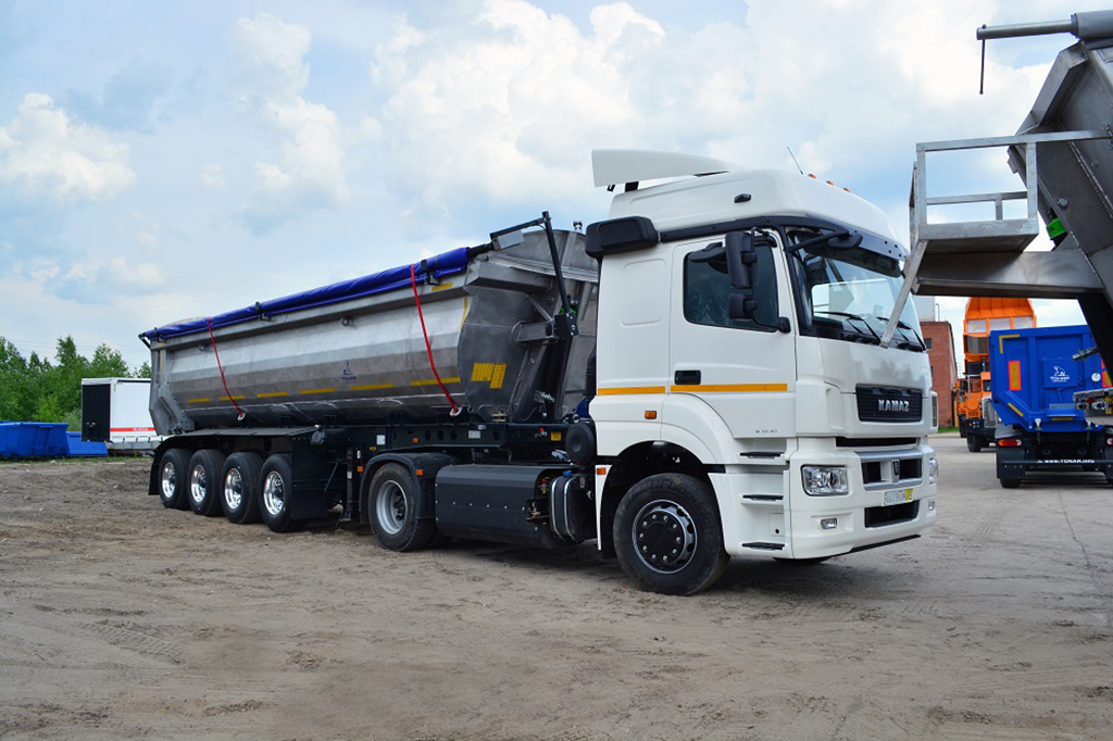 Полуприцеп с задней разгрузкой Тонар-952345 22 куб.м. или 29,7 куб.м. с алюминиевым кузовом.
