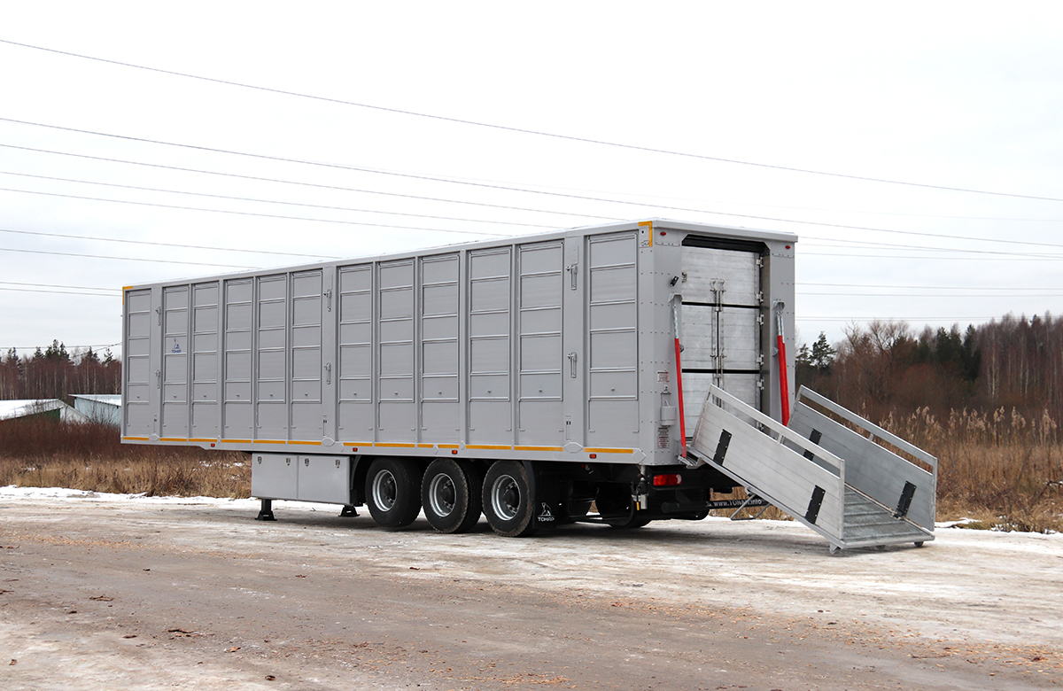 для загрузки и выгрузки животных на заднем дверномблоке установлена опускающаяся дверь-аппарель с подъемными ограждениями