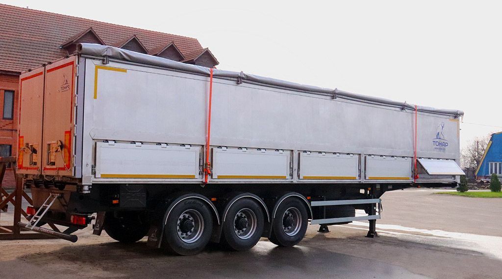 Не самосвальный полуприцеп-зерновоз Тонар-98883 с алюминиевым кузовом подходит для транспортировки грузов общей массой до 30 тонн.